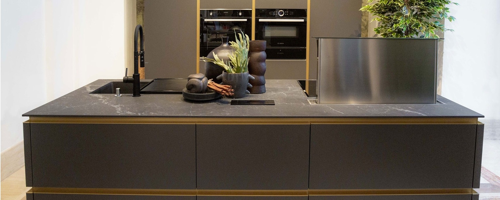 La Cucina Delinea è l’alleata perfetta se ami linee pulite e ordine. Puoi integrare una dispensa walk-in per sfruttare un’ansa della stanza, con attrezzature interne dedicate per detersivi, piccoli elettrodomestici o scorte. Sulla parete operativa, uno schienale attrezzato con mensole e contenitori tiene in vista spezie e ricettari, mentre la barra porta accessori con ganci personalizzabili accoglie mestoli e coltelli. Il risultato? Una cucina pratica e raffinata, ideale per gli spazi domestici in un città come Roma, dove ogni centimetro conta.